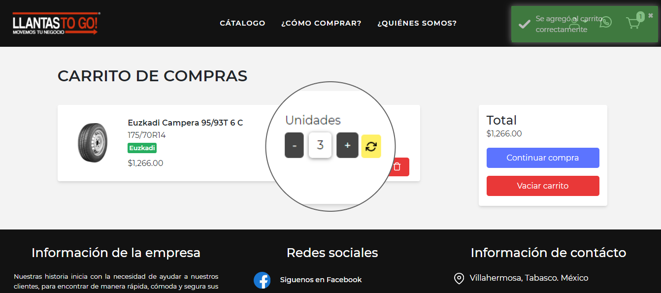 Una vez seleccionada, indica el número de unidades a comprar y haz clic en el botón amarillo para actualizar.