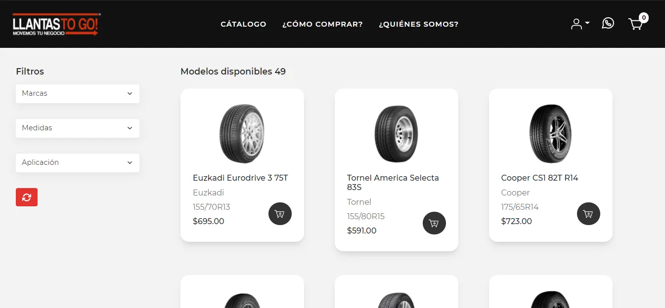 Puedes usar el buscador por medida o dirigirte al cátalogo y seleccionar por marca.