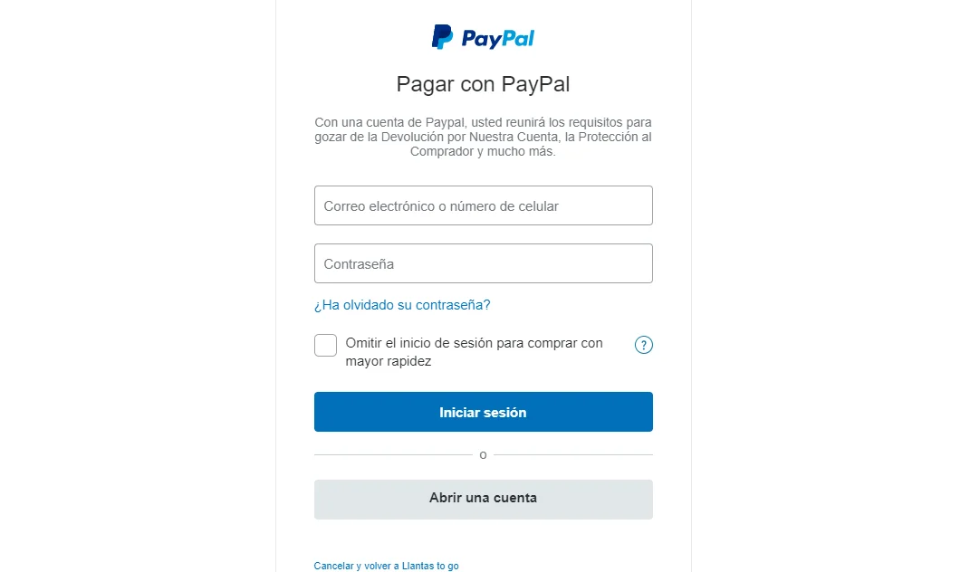 Para poder realizar compras con PayPal, debes tener una cuenta vigente. Si no tienes una, solo haz clic en el botón "Abrir una cuenta".