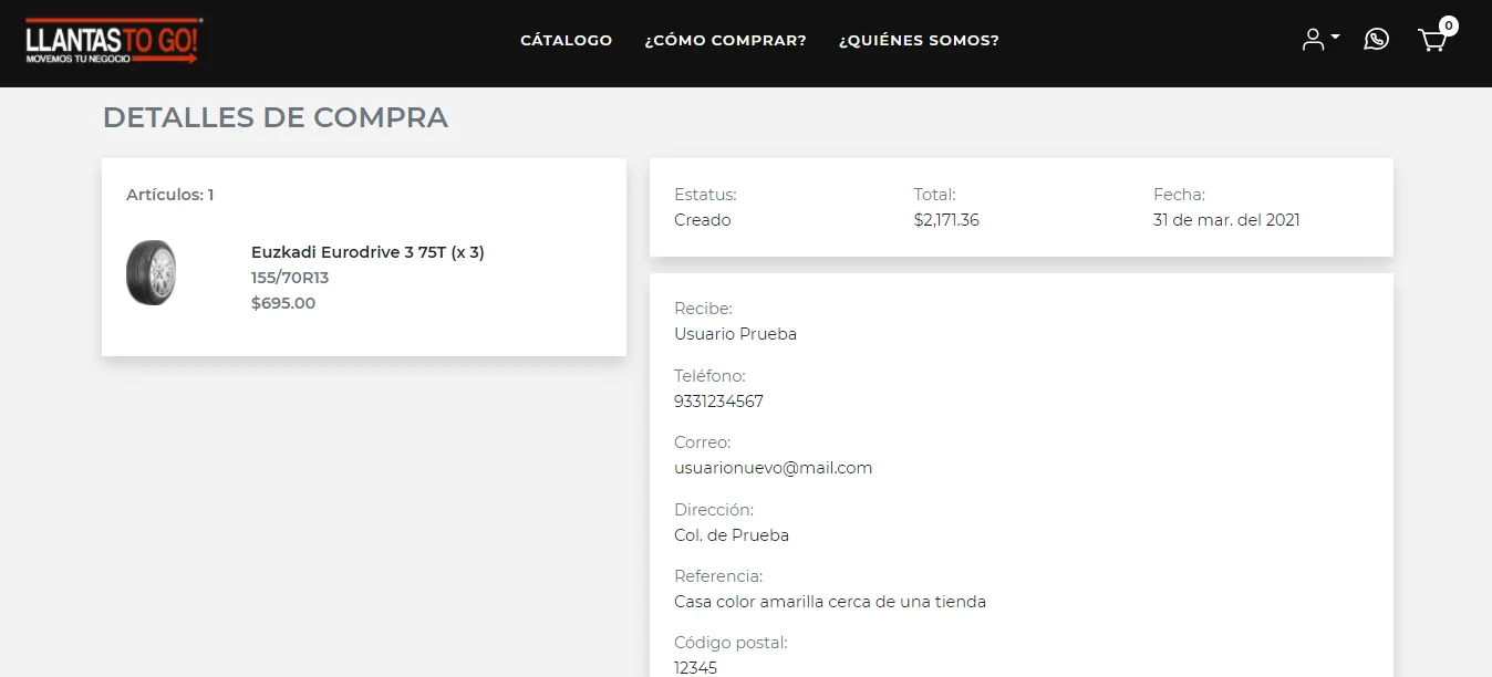 Una vez en esta página, se mostrarán los datos de entrega ingresados en la sección anterior, adémas del total a pagar.
