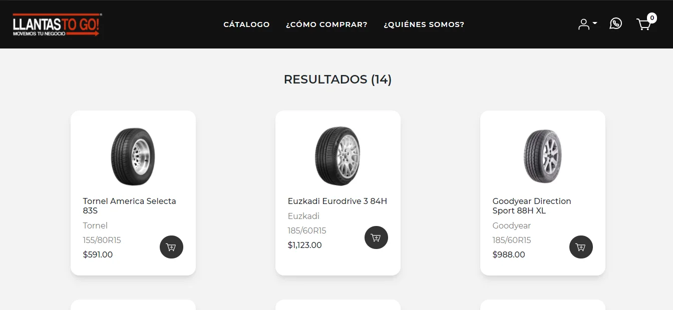 Navega através de Llantas to Go y selecciona la llanta a tu medida.