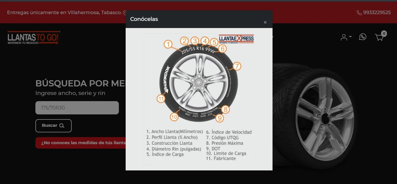 Para usar el buscador de llantas, solo debe ingresar las medidas completas(ancho, serie y rin) de su modelo específico.