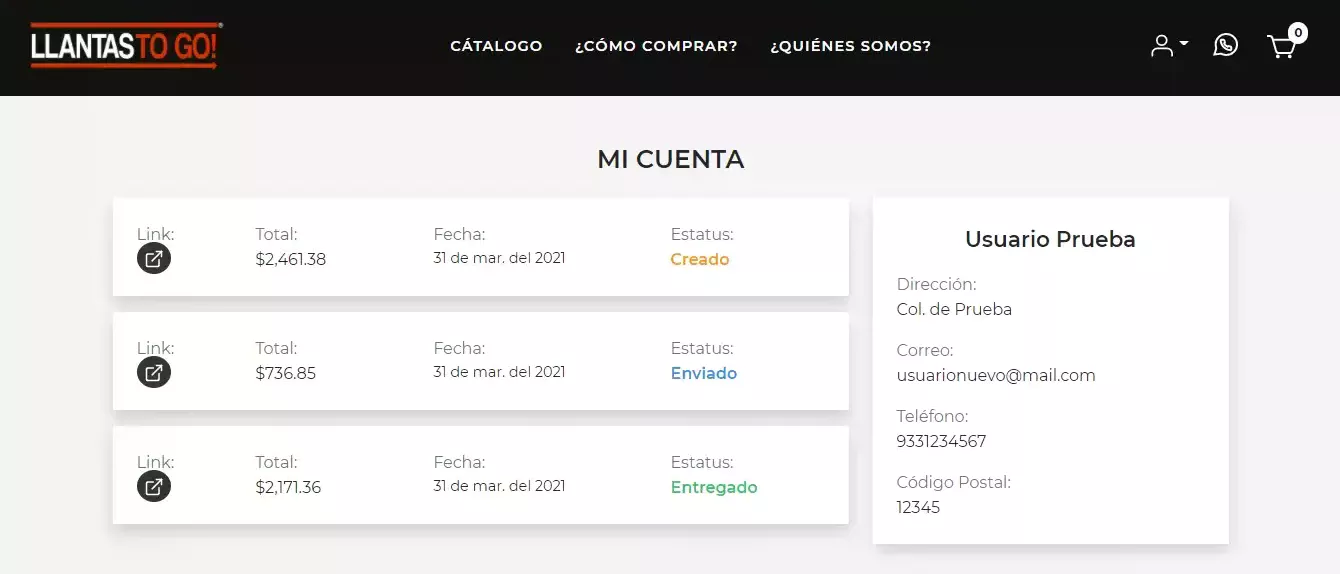 Si desea ver el estatus de su pedido, puede hacerlo dirigiendote al panel de usuario y ver las diferentes compras realizadas. A demás puedes consultarlos individualmente haciendo click en el icono de "link".
